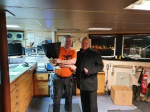 Þann 22. desember sl. kom Sæmundur Þór Hafsteinsson úr sinni síðustu veiðiferð með Arnari HU 1. Af því tilefni afhenti Gylfi Guðjónsson útgerðarstjóri honum blóm