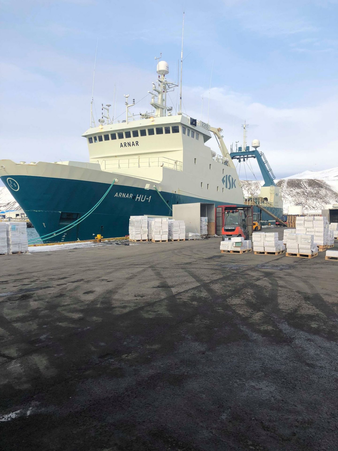Arnar HU1 kom til hafnar á Sauðárkróki til löndunar. Heildarmagn afla um borð er um 547 tonn af fiski upp