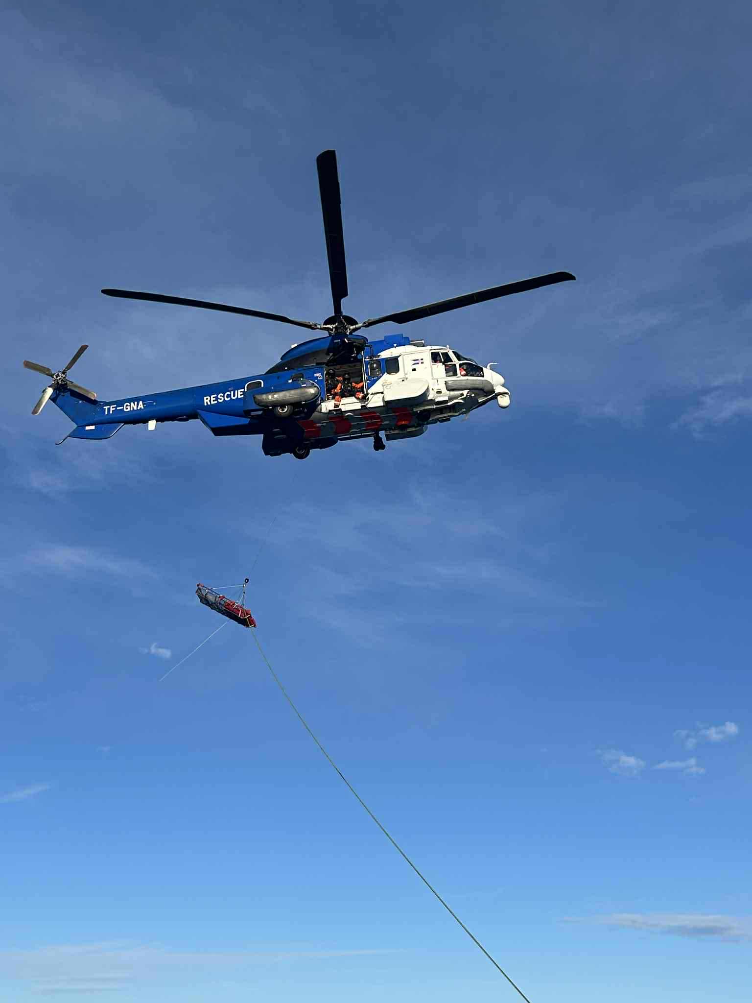 Á dögunum fengu skipverjarar um borð í Arnari HU 1 beiðni frá þyrlusveit landhelgisgæslunnar um að taka þátt í sjóbjörgunaræfingu
