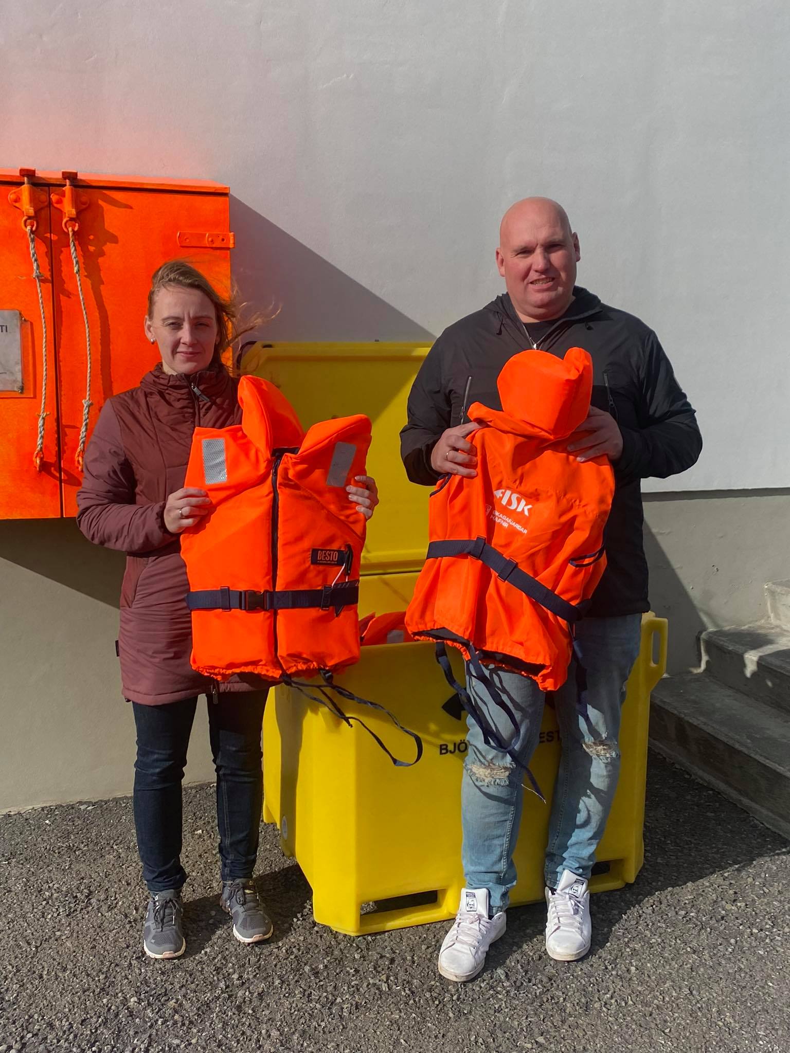 Á dögunum afhenti FISK Seafood Skagafjarðarhöfnum að gjöf tvo kassa með björgunarvestum. Kassarnir verða staðsettir annars vegar austan við Hafnarhúsið