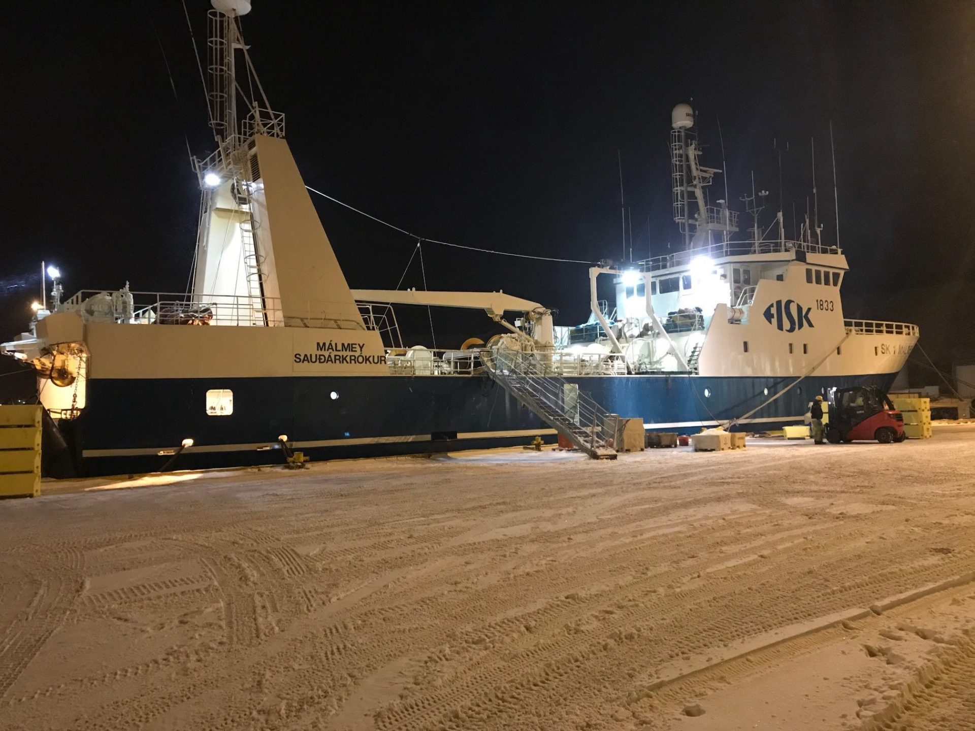 Arnar HU1 kom til hafnar á Sauðárkróki. Aflinn í Arnari samsvarar til 524 tonnum af fiski upp úr sjó og